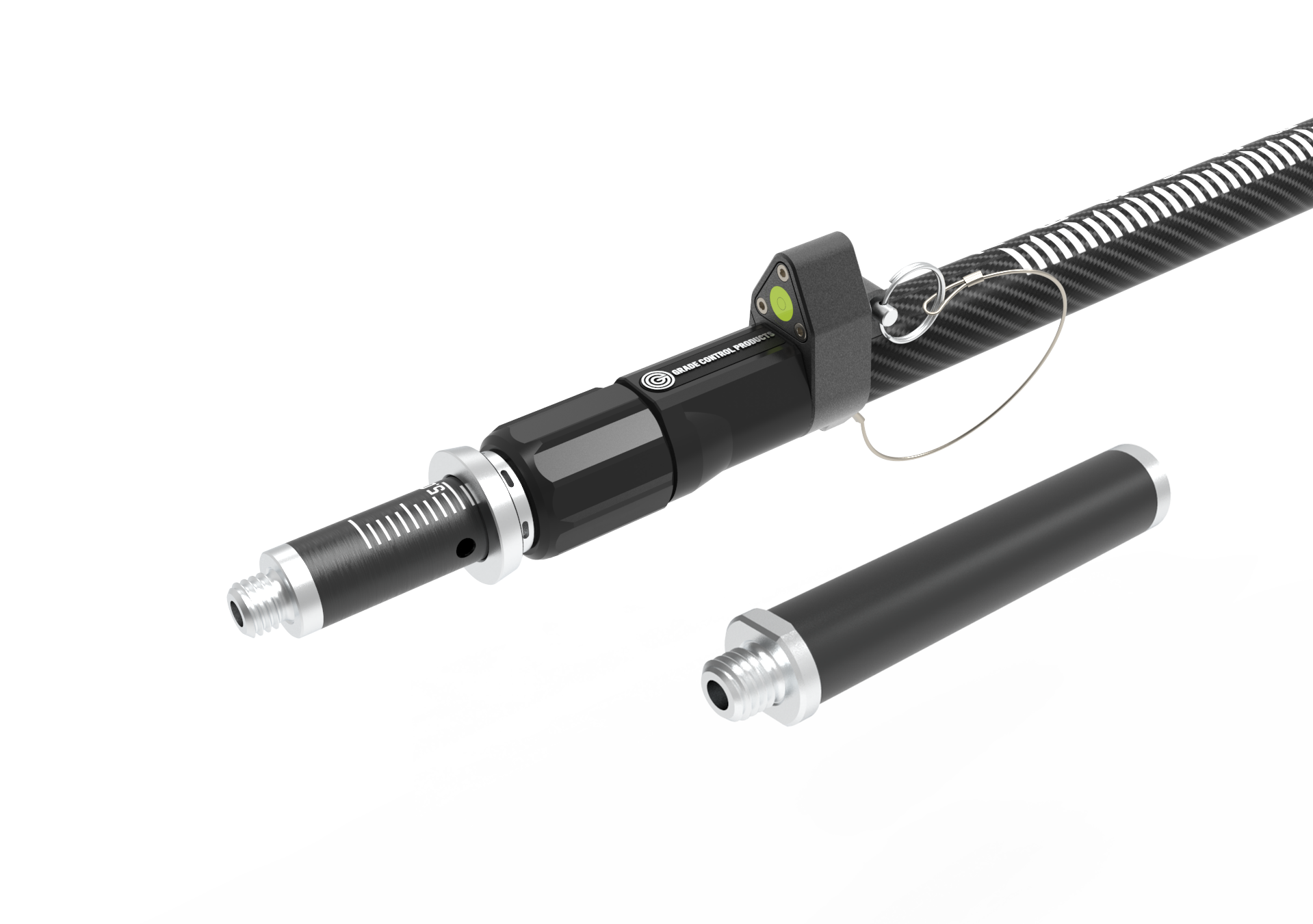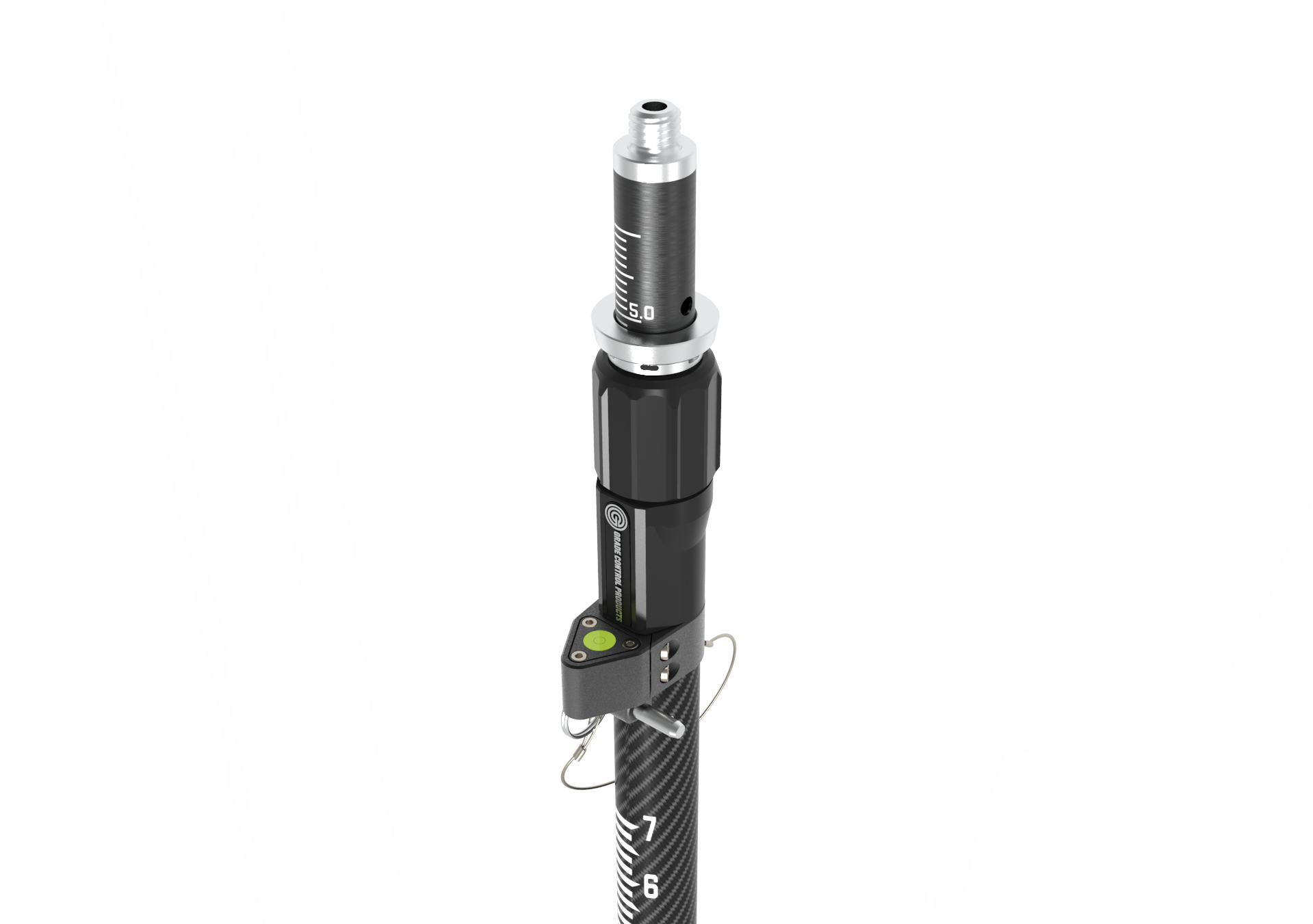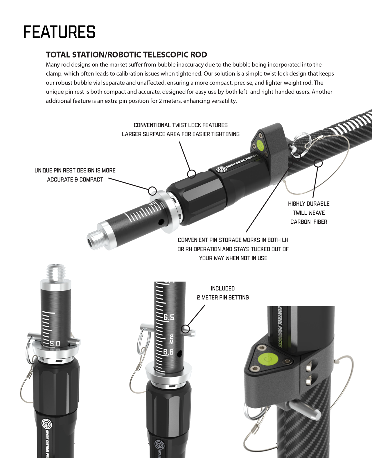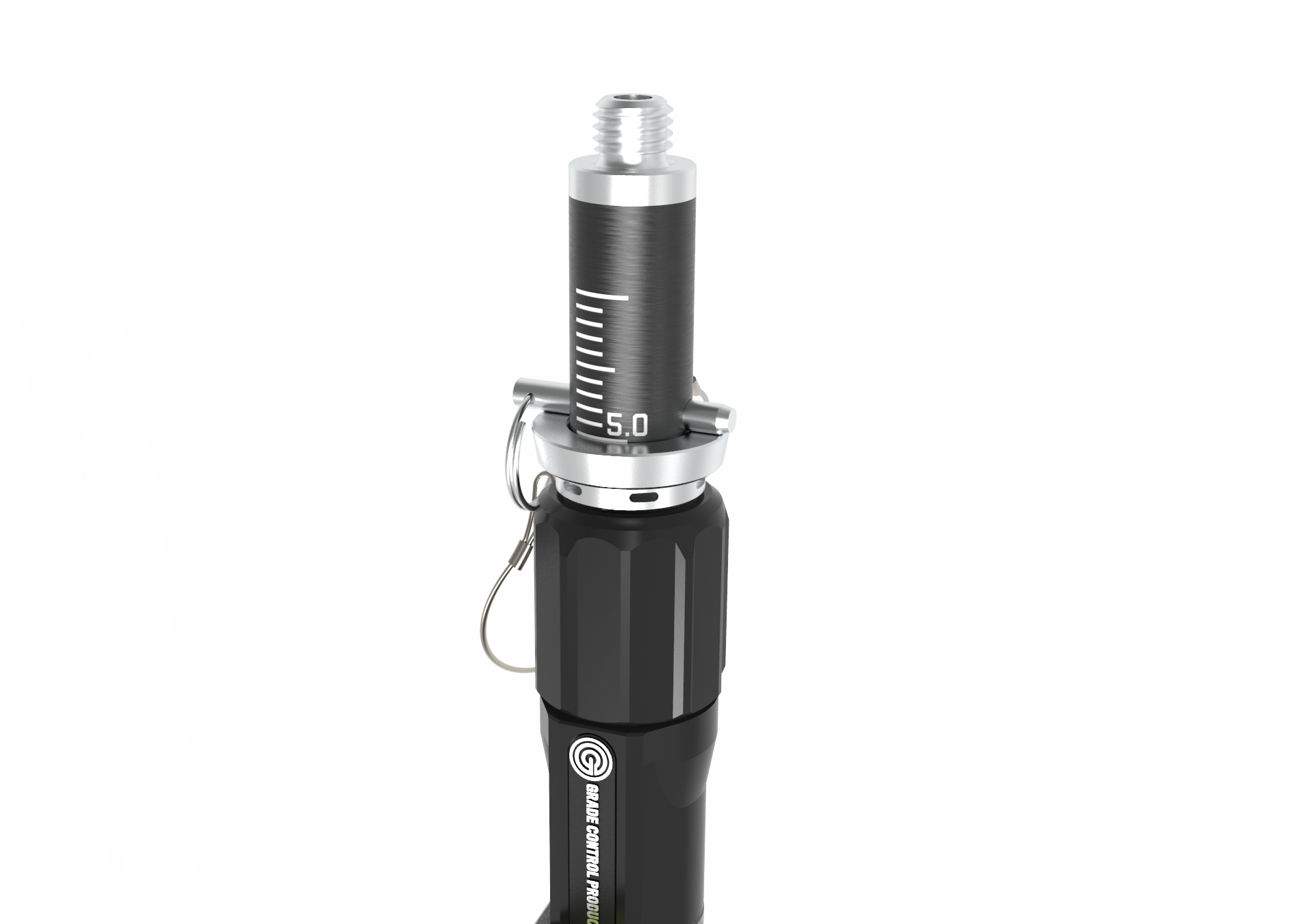 Grade Control Products telescopic collapsible rod with easy grip threaded push collar and easy view bubble level vial. Includes 135mm adapter for 2M conversion, and highly durable titanium, tip. Features standard 5/8"-11 threaded mount.